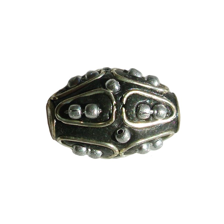 Kashmiribead 13x22mm. Black with Silver big hole. Oval