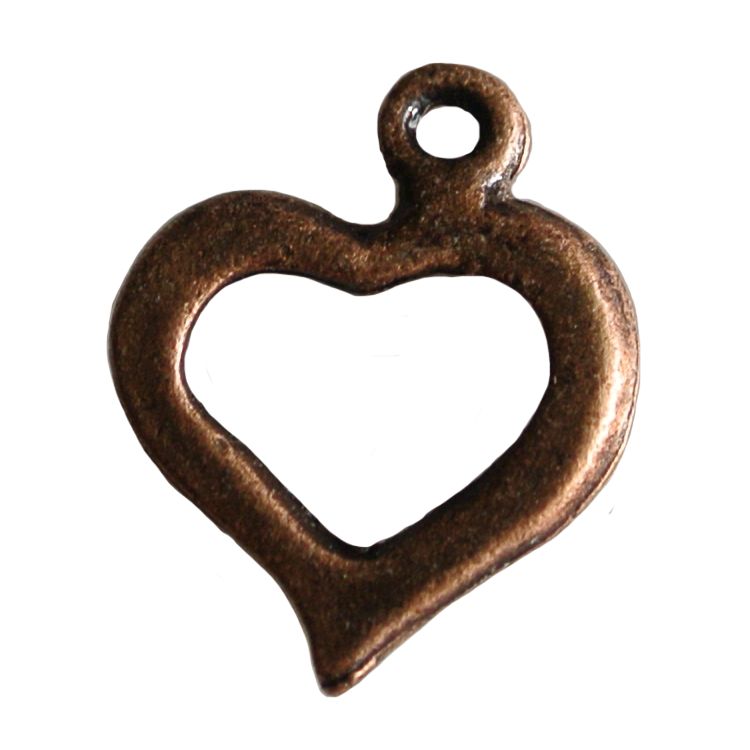 Bedel Hartje. 14x16mm. Rood Koperkleurig