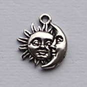 Bedel. Zon/Maan. 15x17mm. Oudzilverkleurig.