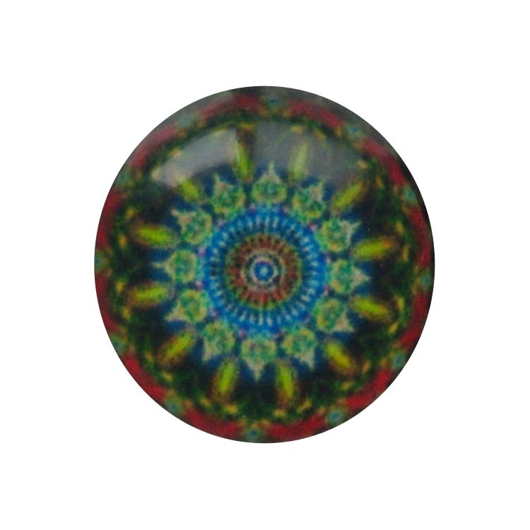 Cabochon Glas met plaatje aan de achterkant Rond 12mm mandala blue red