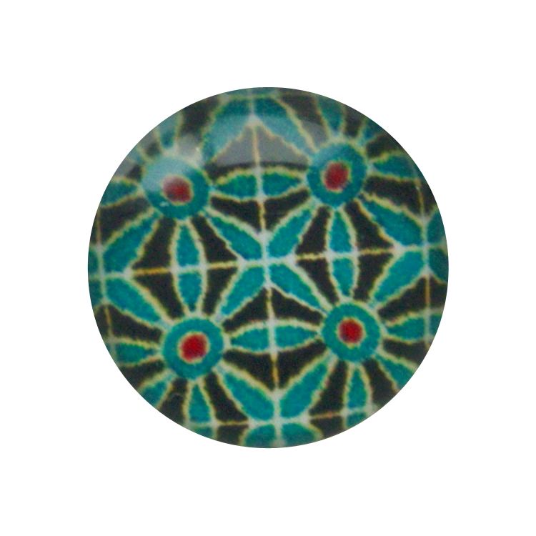 Cabochon Glas met plaatje aan de achterkant Rond 12mm retro flowers petrol