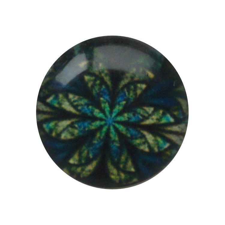 Cabochon Glas met plaatje aan de achterkant Rond 12mm retro flower blue green