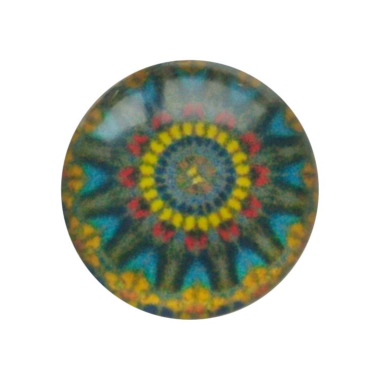 Cabochon Glas met plaatje aan de achterkant Rond 12mm mandala multi yellow