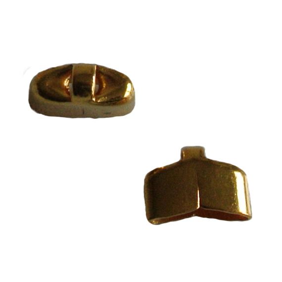Eindkapje goudkleurig voor het afwerken van 2 koorden, rubber of rond gestikt band van 4mm doorsnee. Hoogwaardige kwaliteit brass.