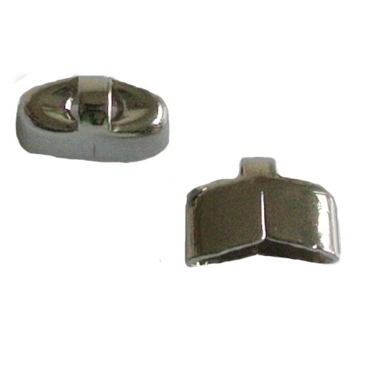 Eindkapje zilverkleurig voor het afwerken van 2 koorden, rubber of rond gestikt band van 4mm doorsnee. Hoogwaardige kwaliteit brass.