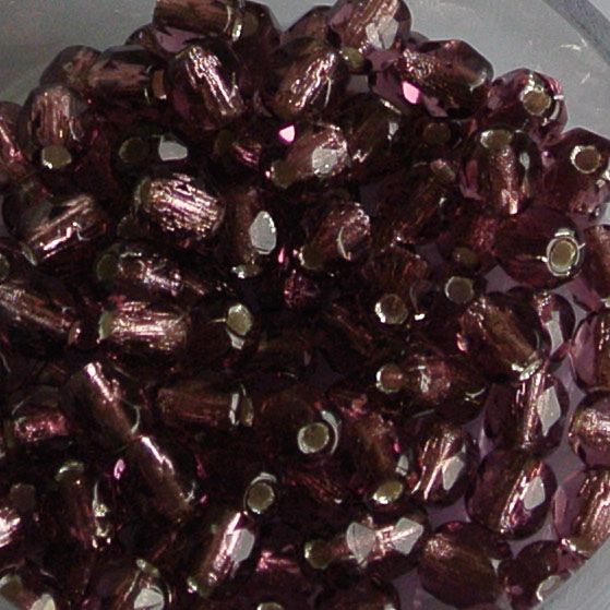 Facet Geslepen Glaskraal. Amethyst Silverlinded 4mm. Tsjechisch. 10 stuks voor