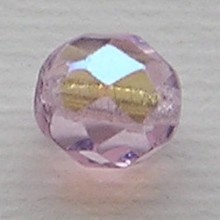 Facet geslepen Glaskraal. Lichtroze AB. 8mm. Tsjechisch.