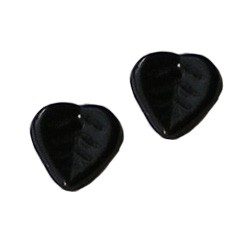 Zwarte Glaskraal. 9mm. Blaadje. Rijggat bovenin. Tsjechisch.