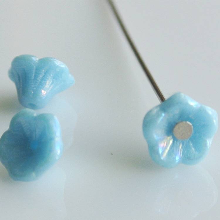 Glasbloemetje 6mm Light Blue Porseleinlook Gaatje zit middendoor.