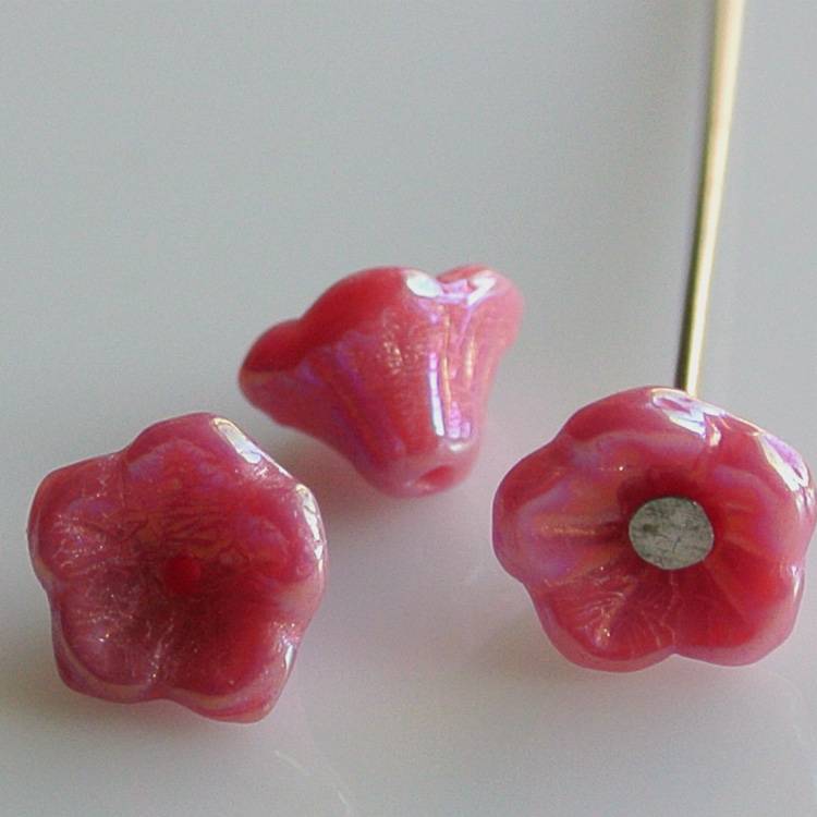 Glasbloemetje 6mm Roze Porseleinlook Gaatje zit middendoor.