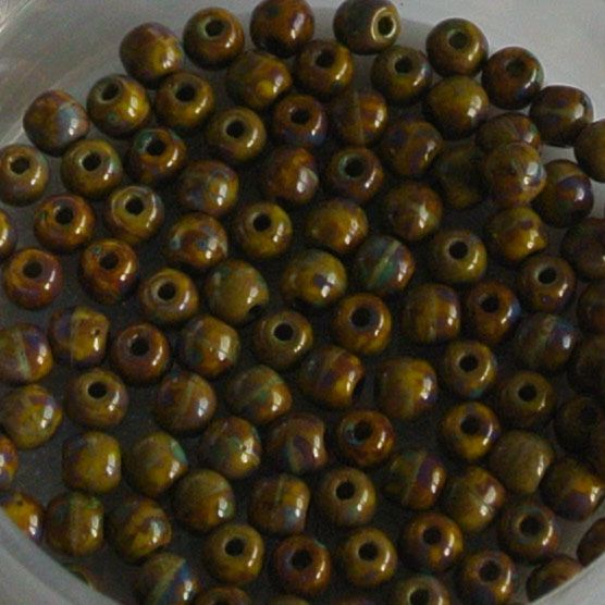 Glaskraal. 3mm. Rond. Khaki Travertin. 100 stuks voor.