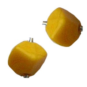 Glaskraal. 5mm. Hoekig met gaatje dwarsdoor. Geel Opaque.