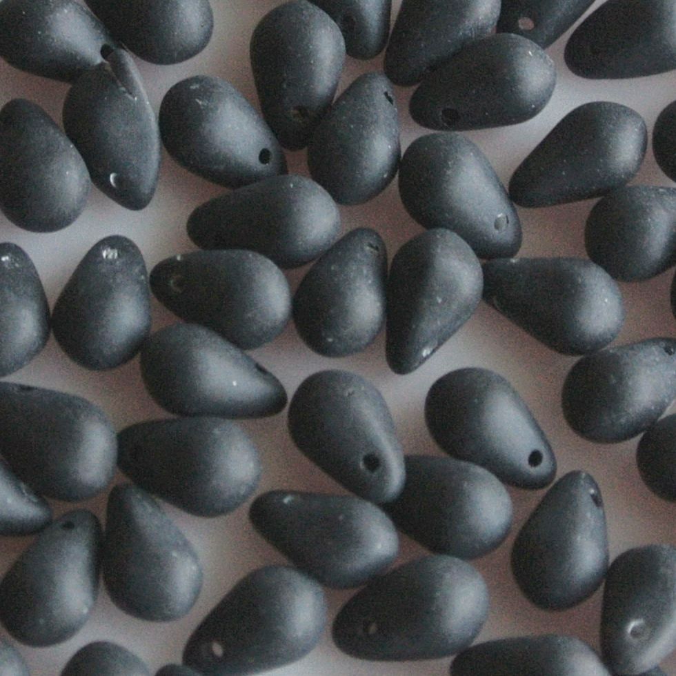 Glaskraal druppeltje. 5x7mm. Mat zwart Het gaatje zit bovenin de kraal. Per 100 stuks voor.