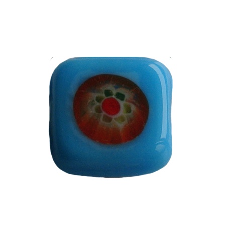 Glaskraal fantasie aqua vierkant plat 13mm.
