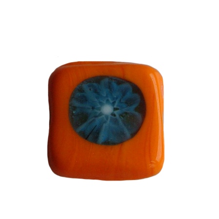 Glaskraal fantasie oranje vierkant plat 13mm.