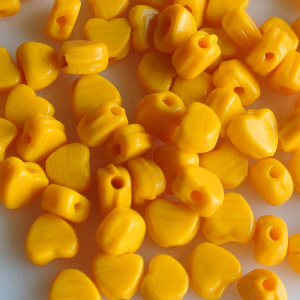 Glaskraal hartje. 5mm. Geel. Per 100 stuks voor.