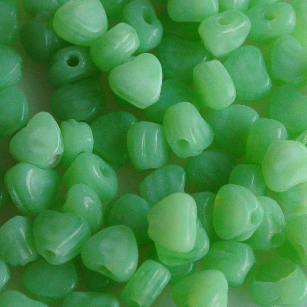Glaskraal hartje. 5mm. Lichtgroen. Per 100 stuks voor.