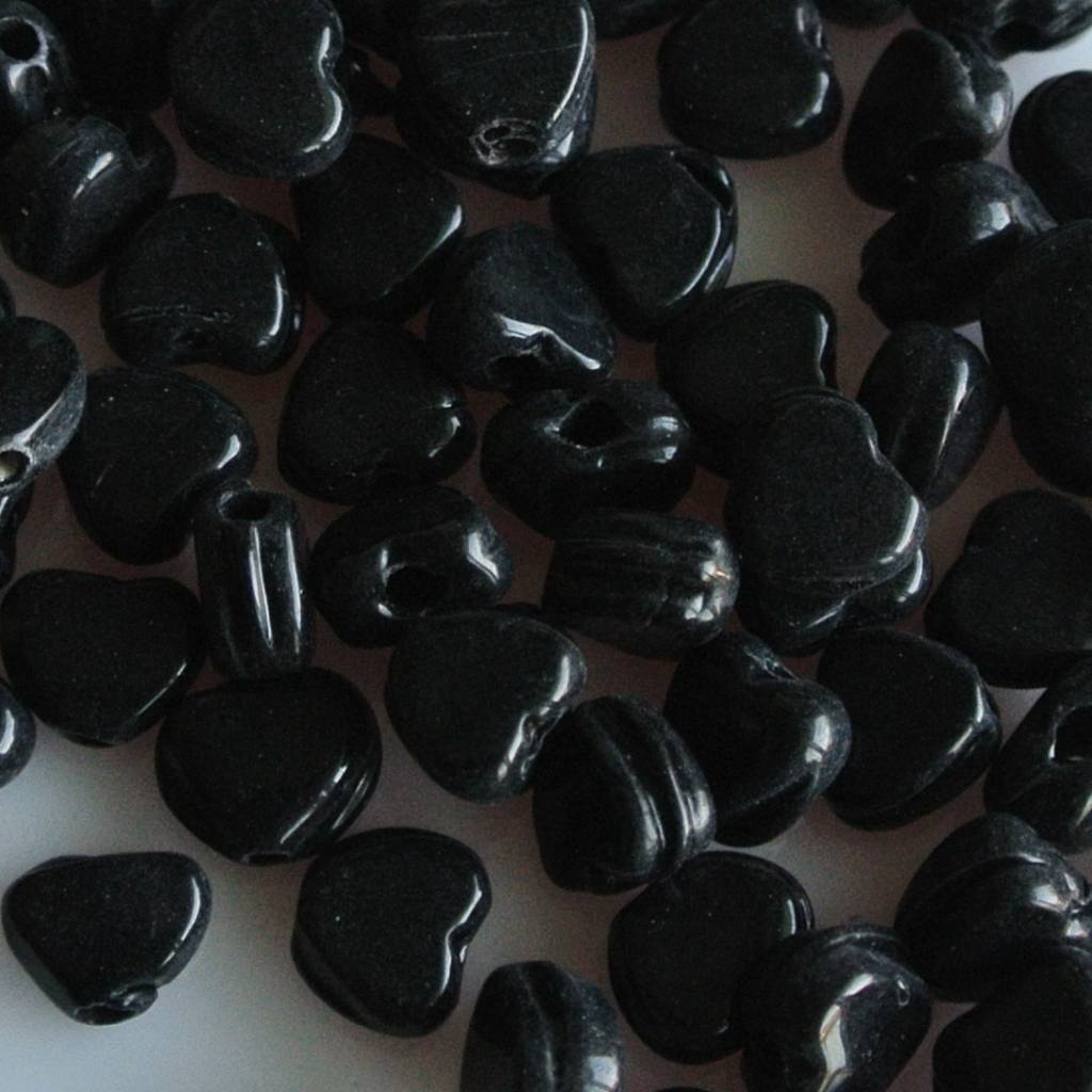 Glaskraal hartje. 5mm. Zwart. Per 100 stuks voor.