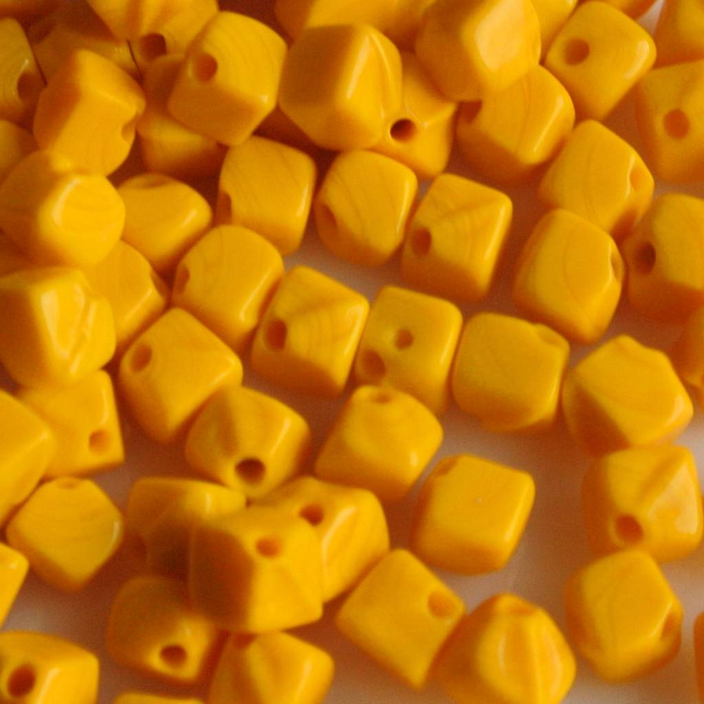 Glaskraaltje hoekig 5x5mm. Geel. Per 100 stuks voor.