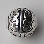Grote Bewerkte Kraal. 18mm. Rond. Zilverkleurig Metallook.