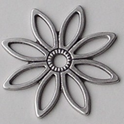 Grote Opengewerkte Bloem. Brass. 57mm. Matzilverkleurig. Hoogwaardige kwaliteit