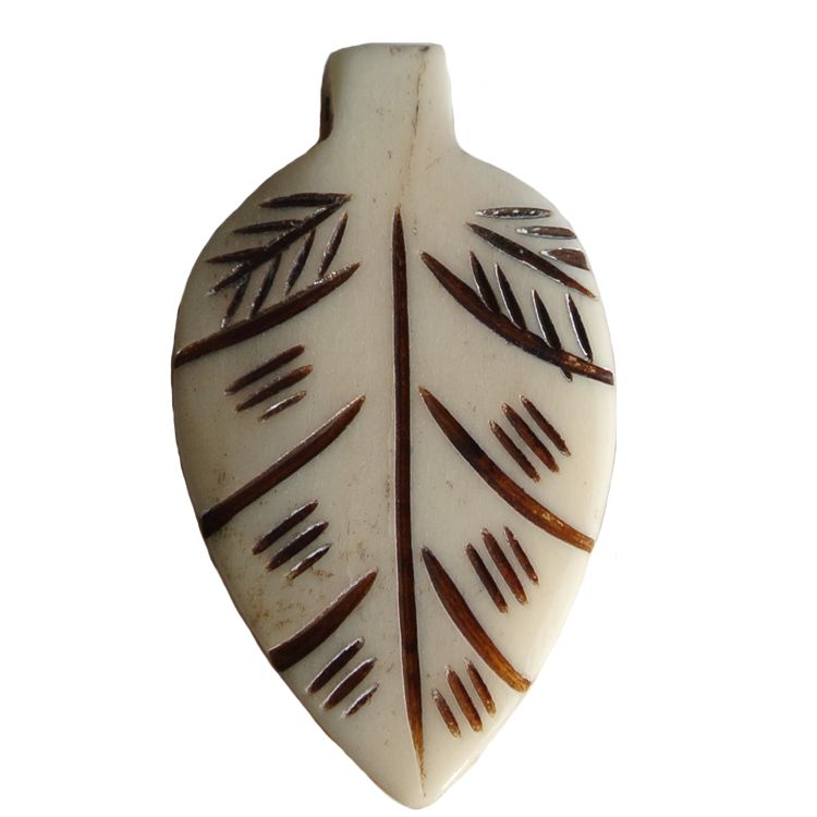 Hanger bladvormig gemaakt van been 33x57mm.