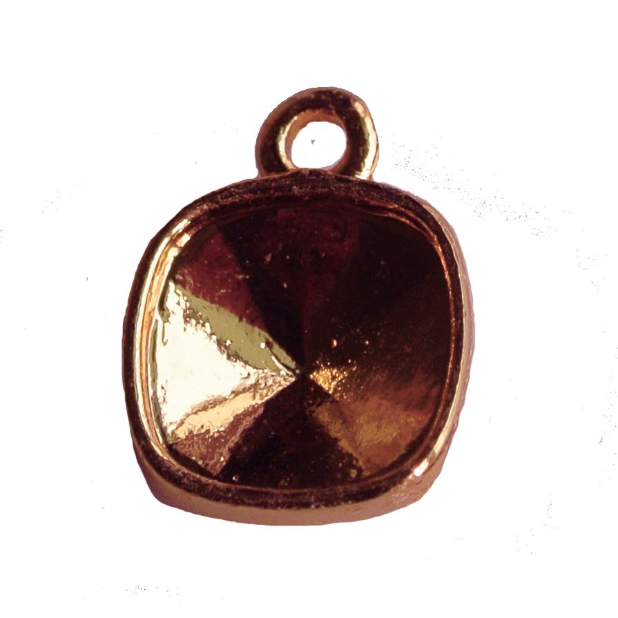 Hanger Vierkant. 12x15mm. voor 1x Swarovskisteen 4470-10mm. Zware Plating. Rosegoudkleurig
