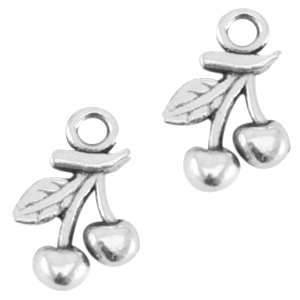 Hangertje Kersjes. Zilverkleurig 10x15mm.