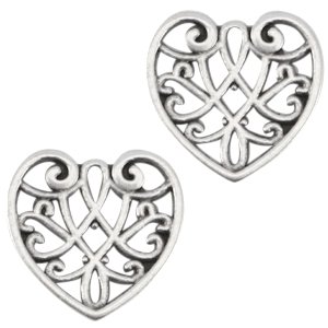 Hangertje Opengewerkt hartje. Zilverkleurig 13mm.