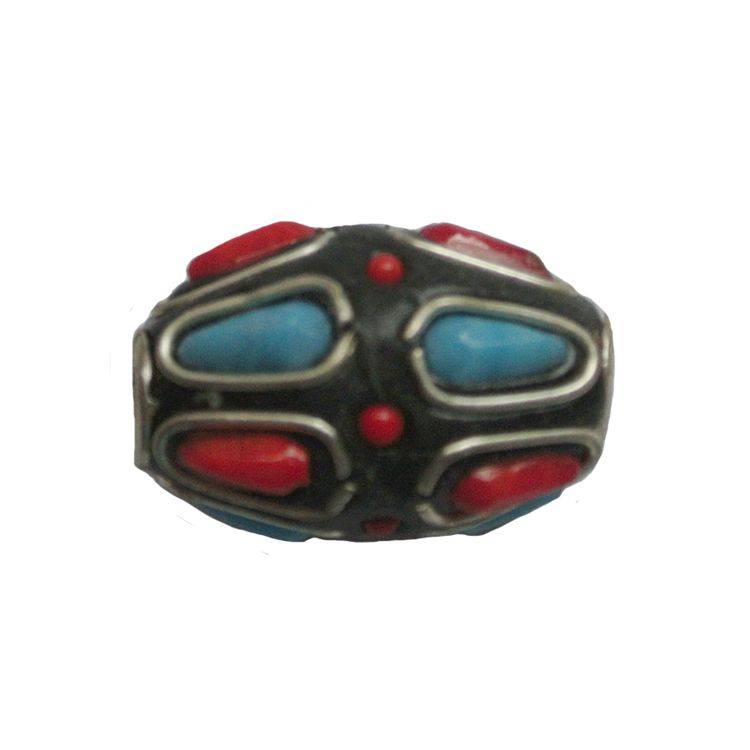 Kashmiribead 13x22mm. Rood blauw met groot gat. Ovaal