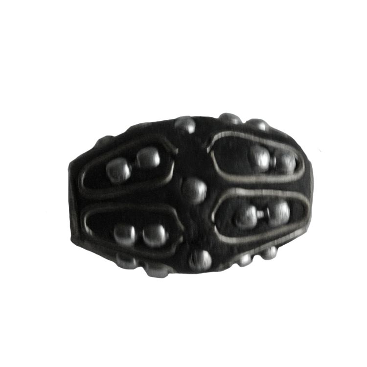 Kashmiribead 13x22mm. Zwart zilver met groot gat.