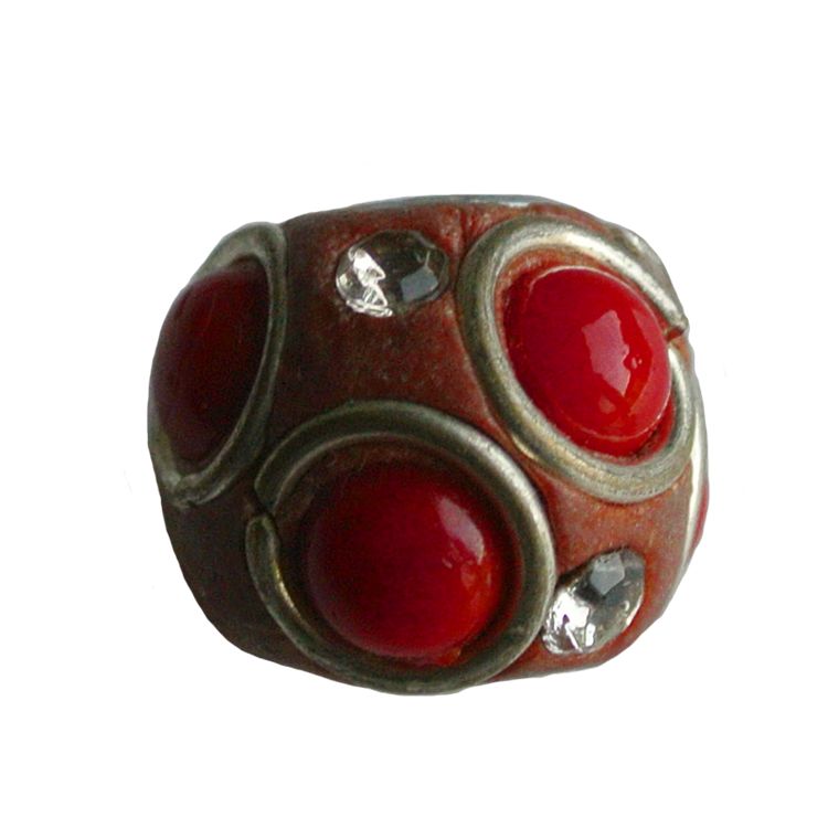 Kashmiribead. 15mm. Bruin Oranje met strass groot gat.