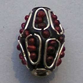 Kasmiri Bead. 20mm. Zwart rood zilver