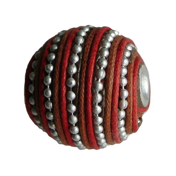 Koordkraal. 20mm. Roodbruin met zilverkleurig ballchain. Deze handgemaakte kralen hebben een groot gat.