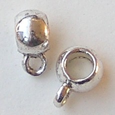 Kraal. Rondelle. 6x8mm breed. Rijggat is 4.5mm. Kraal heeft een oogje. Lichtzilverkleurig.