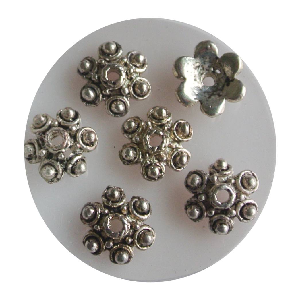 De kraalkapjes rijg je mee in een ketting of met het kettelen van bijvoorbeeld een mooie hanger. Deze kraalkap kan net even iets extra's toevoegen aan een ontwerp. Soms kun je er ook een probleem mee oplossen, zoals wanneer het rijggat van je kraal te groot is om deze op een nietstift te zetten, gebruik dan een kapje als eindstuk.