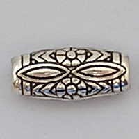 Langwerpig Bewerkte kraal. 11x25mm. Zilverkleurig Metallook