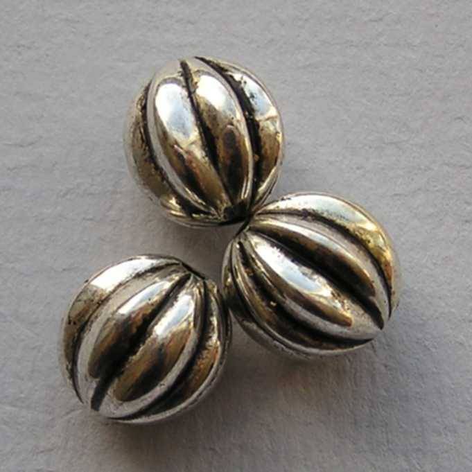 Meloen vormige kraal 10mm. Zilverkleurig Metallook