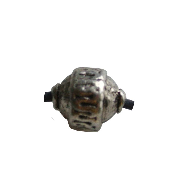 Metalen kraal bewerkt. 10x12mm. Zilverkleurig.