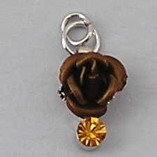 Metalen Roosje aan hanger met Strass. 7x10mm. Bruin