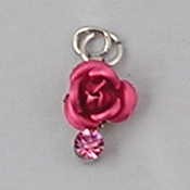 Metalen Roosje aan hanger met Strass. 7x10mm. Fuchsia