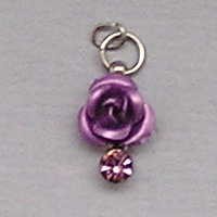 Metalen Roosje aan hanger met Strass. 7x10mm. Lila.