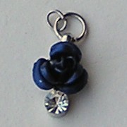 Metalen Roosje aan hanger met Strass. 7x10mm. Montana Blue.