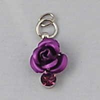 Metalen Roosje aan hanger met Strass. 7x10mm. Paars