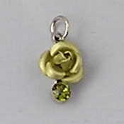 Metalen Roosje aan hanger met Strass. 7x10mm. Peridot