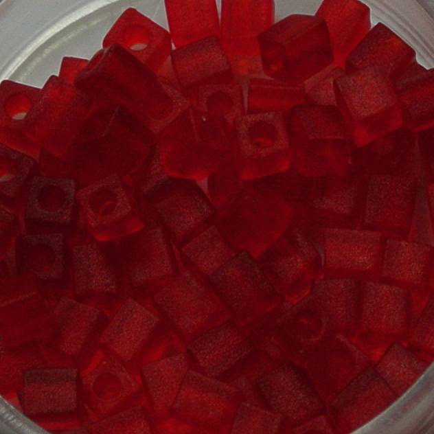 Miyuki 4x4mm. Kubus beads. Tube 20 gram. Matte Transparant Red.