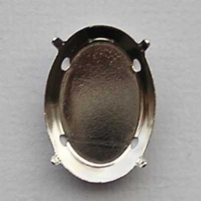 Rijgkastje voor ovale platte plaksteen. Met 2 gaatjes. 18x25mm zilverkleurig