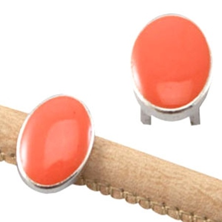 Schuiver ovaal 10x14mm Zilverkleurig met Coral enamel