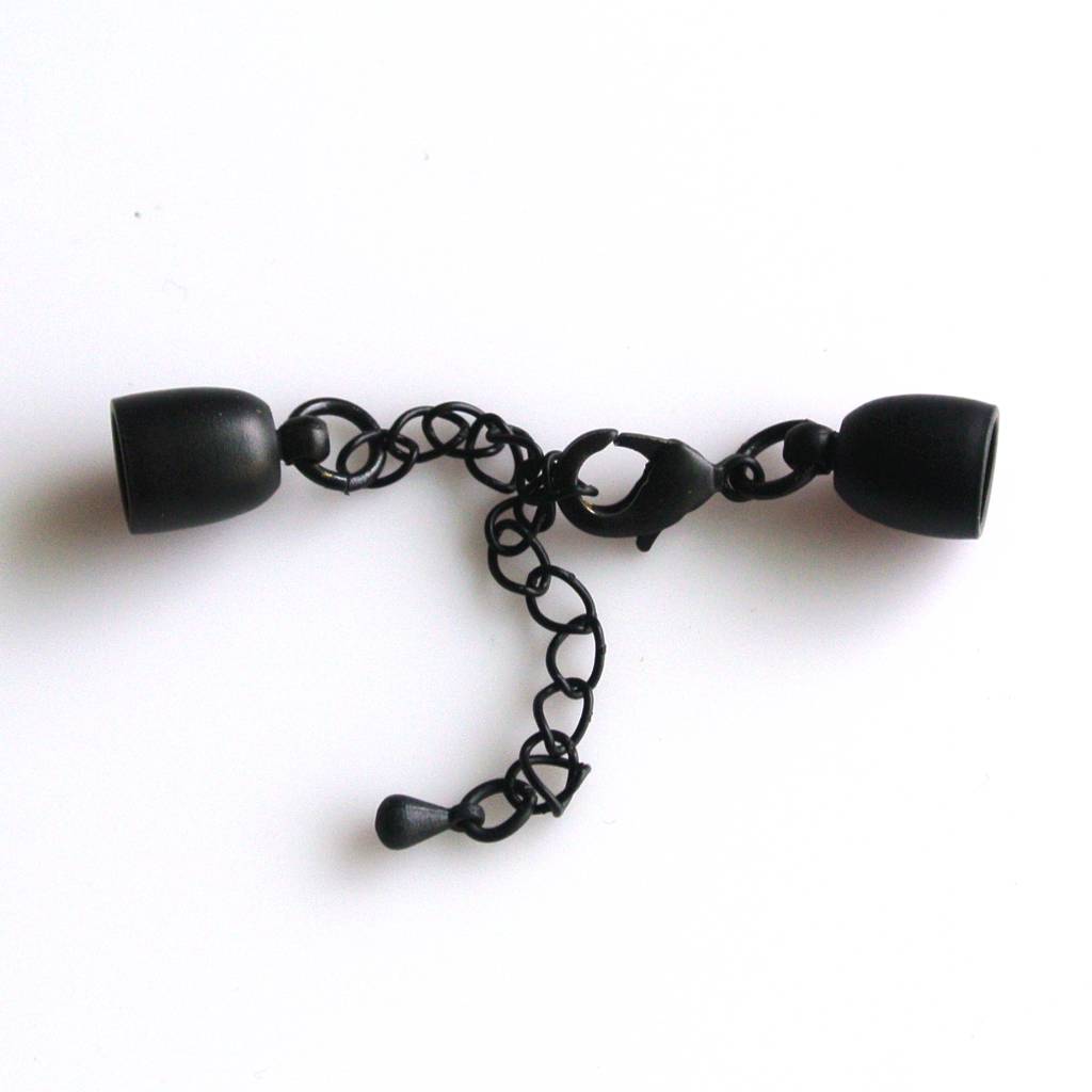 Setje Eindkappen zwart 4mm. incl. Verlengketting en sluiting.