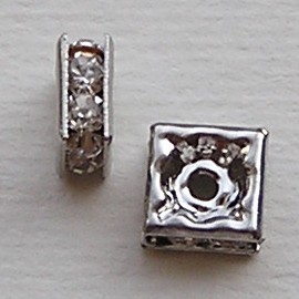 Squadrelle. 7x7mm. Zilverkleurig met Crystal Strass.